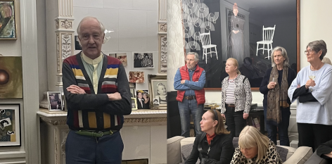 2019 års avslutningsfest hade vi på Skeppsholmen. Vi började hos Barbara Bunke med utlottningen av inköpta verk. Hennes tillfälliga lägenhet är i huset där tidigare Föreningen Hertha Hilfons Vänner höll till.